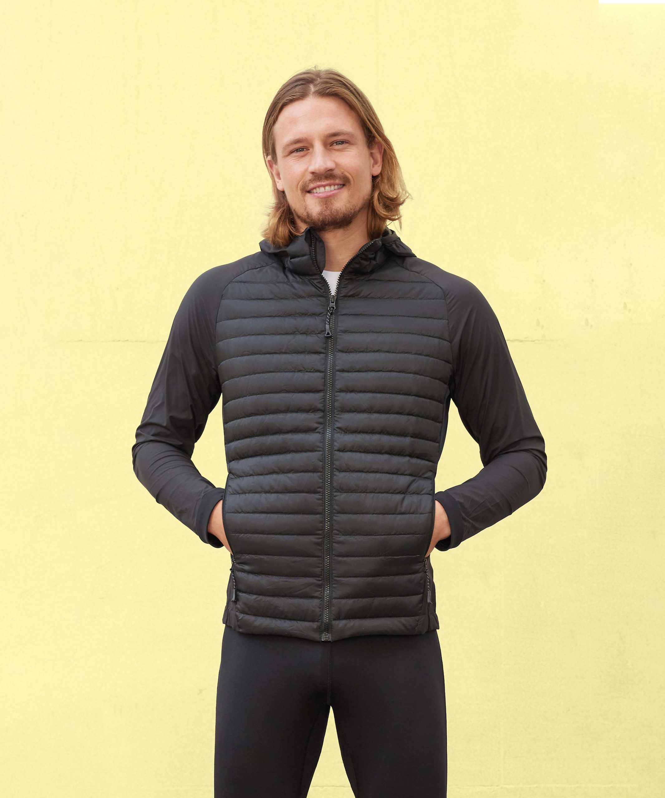 Veste de running légère avec petit col montant. Corps en ripstop matelassé à l’avant et à l’arrière. Bas et capuche élastiqués pour un ajustement optimal. Empiècements stretch respirants pour plus de confort. Deux poches sur le devant.
