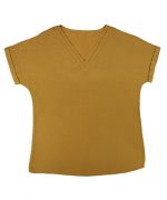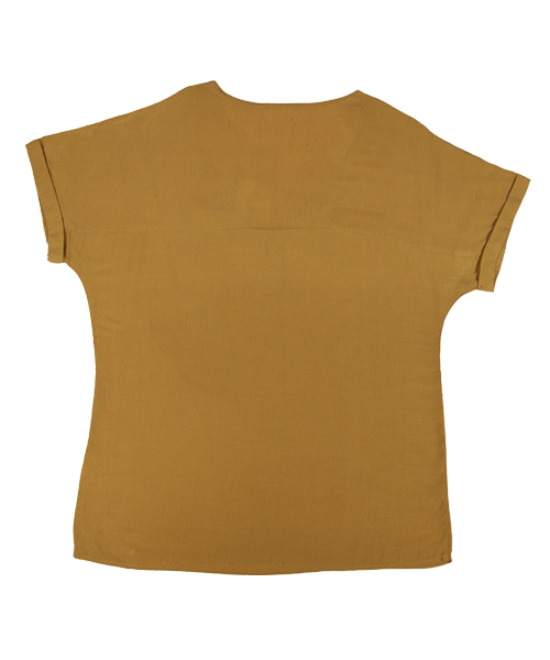 Blouse féminine et élégante se distingue par sa coupe fluide et son col en V, qui apporte une touche de légèreté et de raffinement. Les revers au niveau du col ajoutent une note de sophistication subtile, tandis que les manches courtes à revers complètent le look avec style, offrant à la fois confort et une belle silhouette. Confectionnée dans une matière douce et légère, cette blouse est idéale pour les journées plus chaudes, tout en restant chic et facile à porter. Parfaite pour un look décontracté ou plus habillé, elle se marie aisément avec différents styles de bas, des pantalons aux jupes, pour une allure à la fois élégante et décontractée.