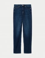 Jean en denim de coton doux, élégant et pratique avec ses 5 poches, offrant une coupe longue (réf. 6) et une teinte bleu indigo foncé intemporelle.