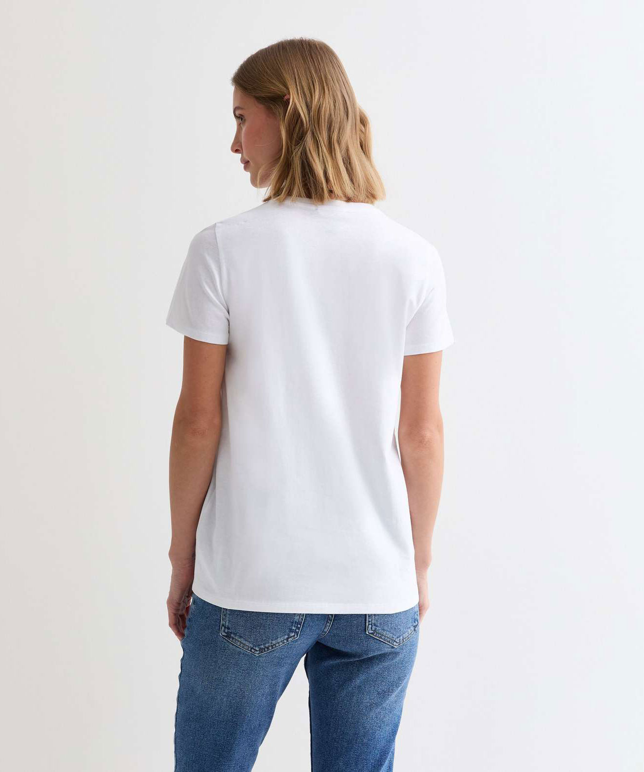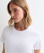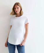 T-shirt de grossesse blanc, conçu avec un col rond classique et des demi-manches agrémentées d’un petit revers, offrant confort et élégance pour accompagner chaque étape de la maternité.