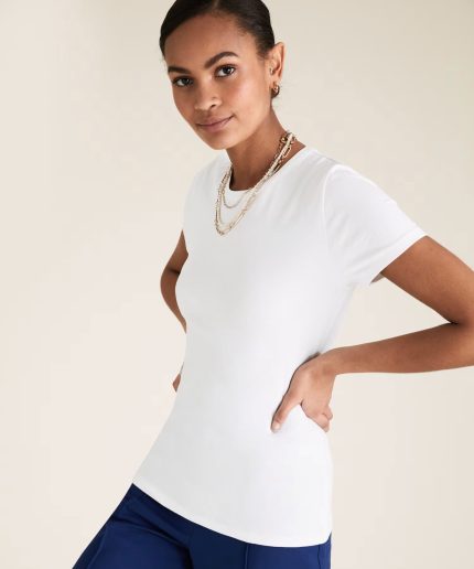 T-shirt noir basique, ajusté à la coupe près du corps, avec un col rond classique. Sa couleur sobre et son design épuré en font une pièce incontournable et polyvalente, facile à associer avec tous types de tenues, du plus casual au plus sophistiqué. Confortable et intemporel, il se distingue par sa simplicité, offrant un style à la fois minimaliste et moderne.