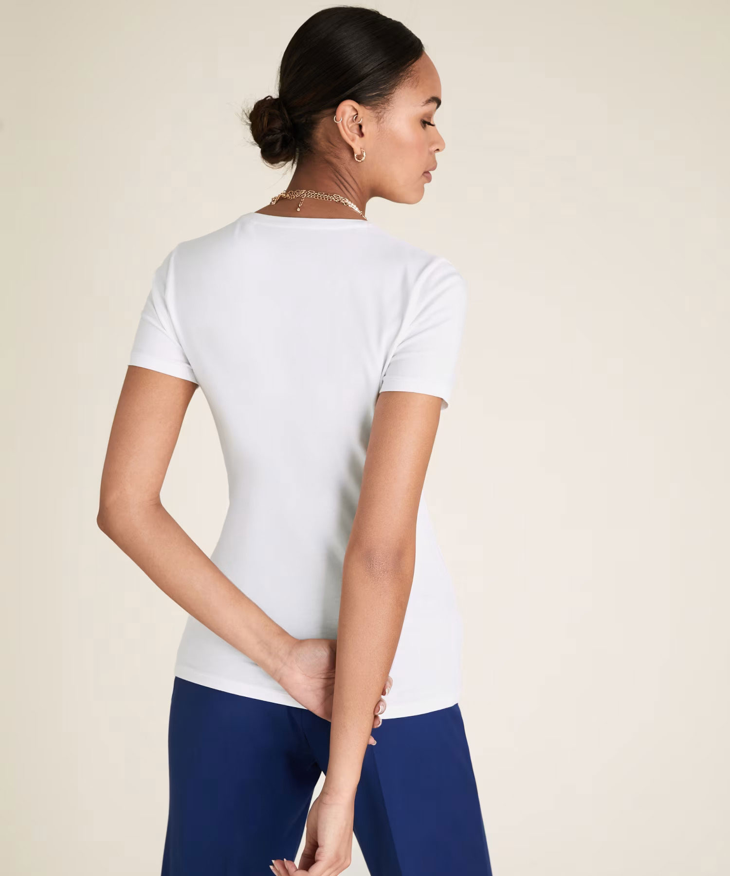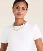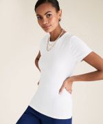T-shirt blanc classique, à la coupe ajustée, sculpte délicatement la silhouette pour un look moderne et épuré. L’encolure ras du cou, simple et intemporelle, ajoute une touche de sophistication discrète, tandis que les manches courtes apportent confort et légèreté. Ce modèle est parfait pour ceux qui recherchent une pièce versatile, idéale pour créer des tenues minimalistes et élégantes. Facile à associer avec des jeans, des jupes ou des pantalons, il devient un basique incontournable dans toute garde-robe contemporaine, prêt à s’adapter à toutes les occasions.