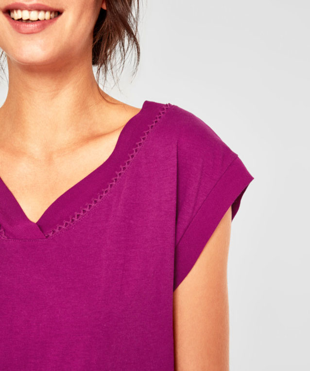 T-shirt ample en matière douce , conçu pour un confort optimal. Son col en V apporte une touche d’élégance, tandis que ses petites manches offrent une allure décontractée et moderne.